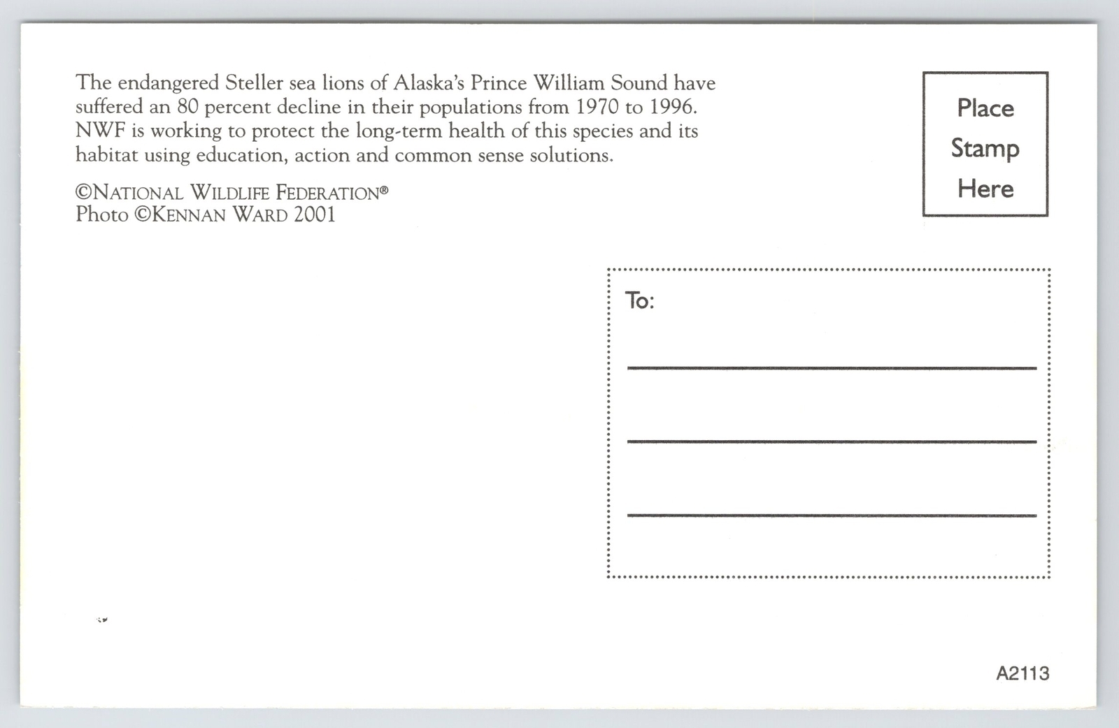 Prince William Sound Alaska~Sea Lions~NWF~2001 Postcard