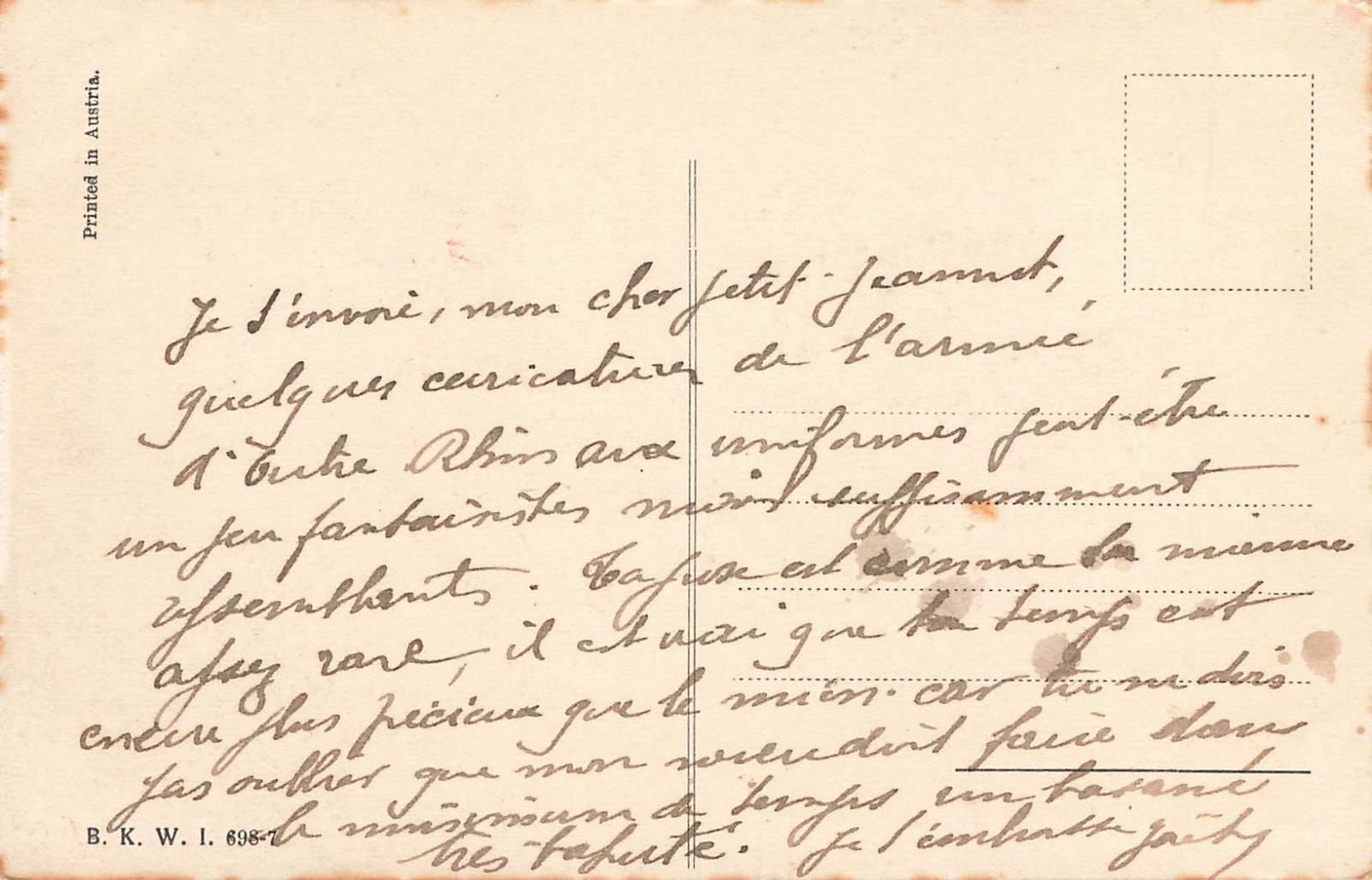 Printed in Austria B. K. W. I. "Grenadier" Military Postcard
