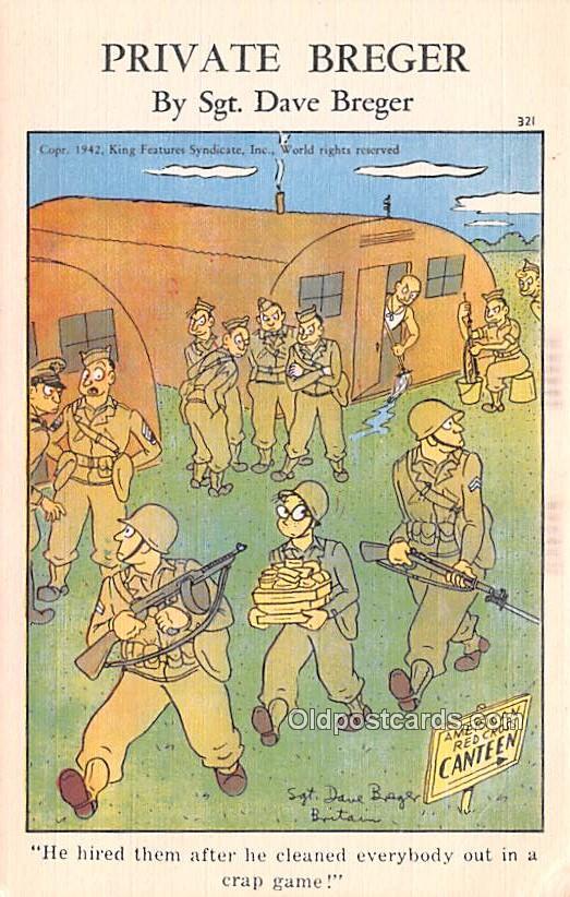 Private Breger By Sgt Dave Breger Military Comic Postcard Unused, Grade: 2, , Size: Regular size: Approx 3 1/2 X 5 1/2 inch (9 cm X 14 cm) Grading Scale: Grade 1 = Perfect corners Grade 2 = Very Minimal corner ... Read More