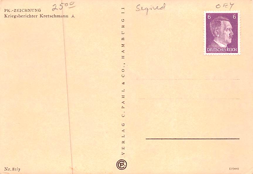 Propaganda Anti Hitler Postcard Hitler Stamp on back, Grade: 2, , Size: Regular size: Approx 3 1/2 X 5 1/2 inch (9 cm X 14 cm) Grading Scale: Grade 1 = Perfect corners Grade 2 = Very Minimal corner wear, no cr ... Read More