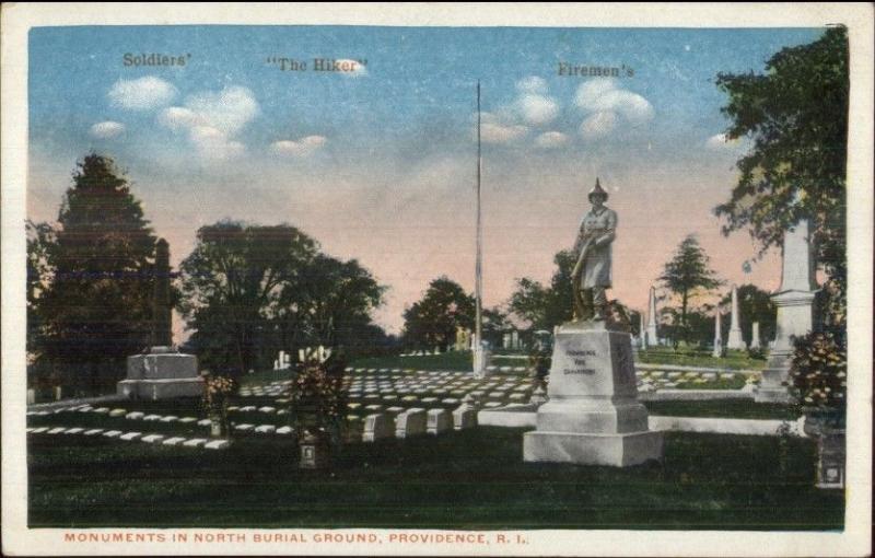 Providence RI Cemetery Fire Fighters Monument c1920 Postcard