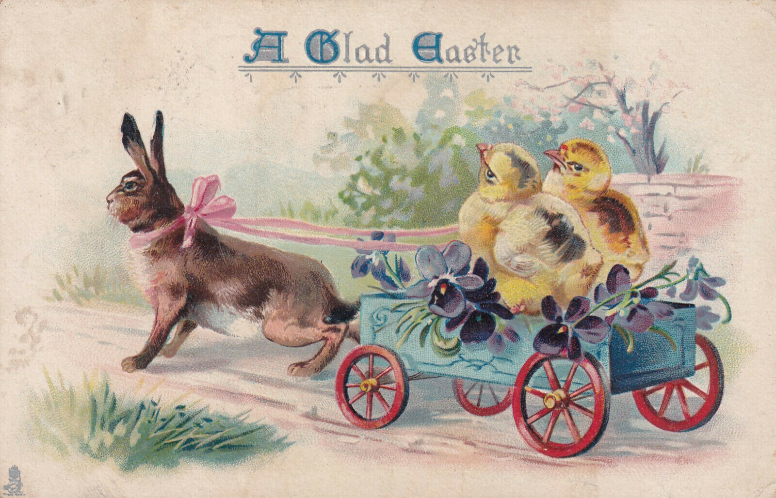 PU-1913; A Glad Easter, Hare Pulling Chicks On A Cart, TUCK No. 715