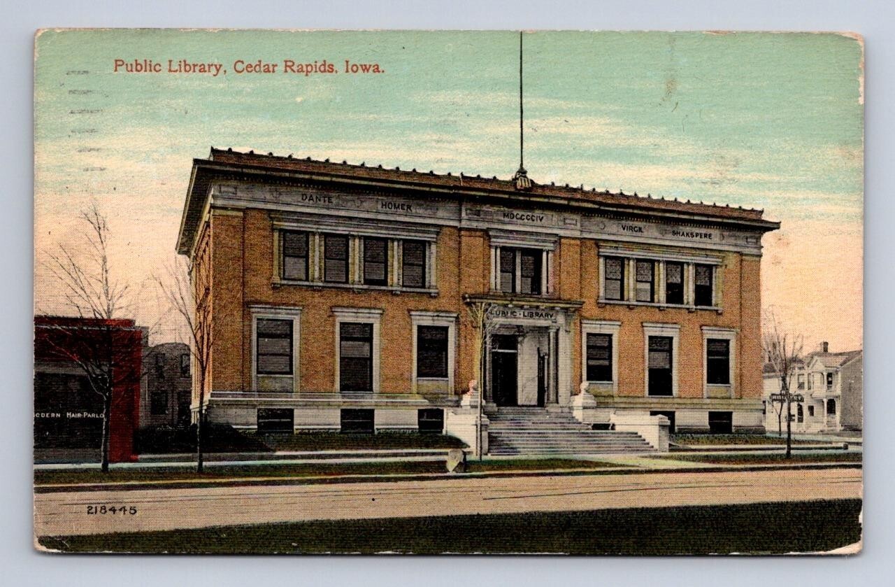 PUBLIC LIBRARY CEDAR RAPIDS IOWA POSTCARD 1914