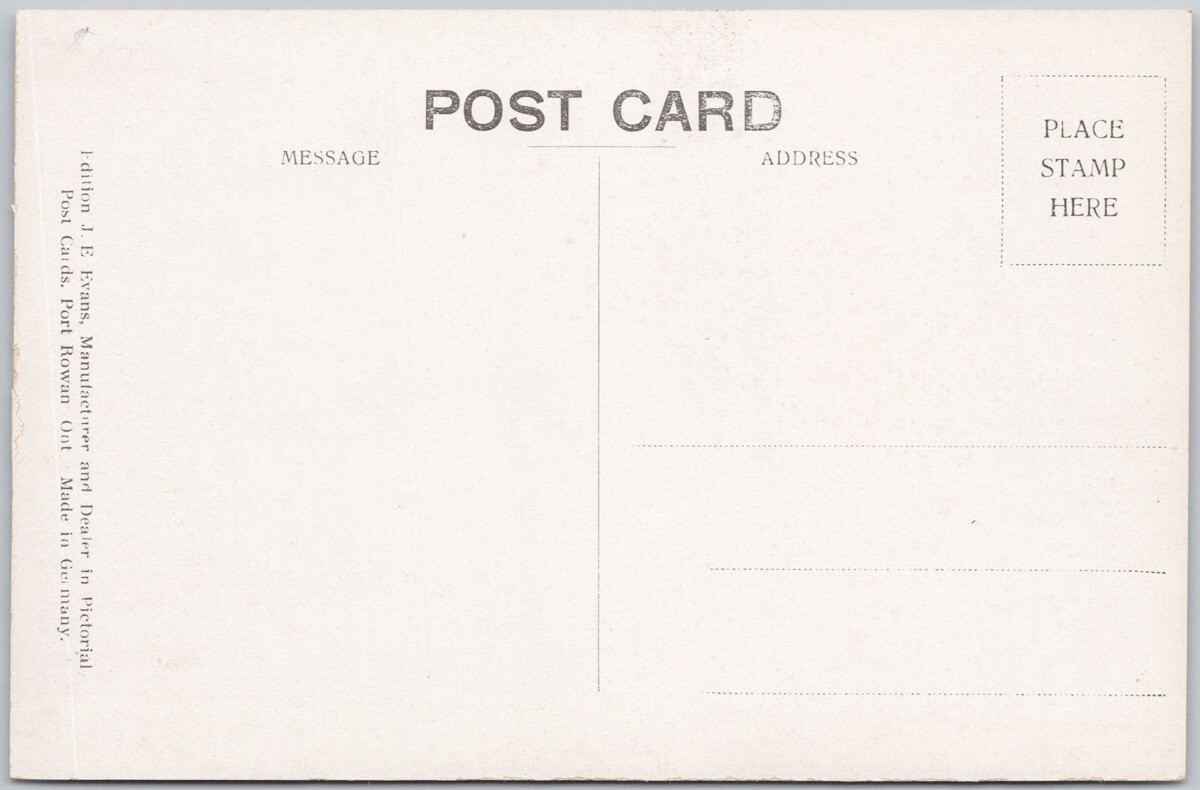 This vintage postcard features a detailed lithograph of the Public Library in Hanover, Ontario, Canada. The image captures the stately brick building adorned with ivy, classical columns at the entrance, and a prominent statue in front, offering a glimpse into early 20th-century Canadian architecture and community landmarks. The sepia tone adds a nostalgic historic charm.Printed by J. E. Evans, a known postcard manufacturer from Port Rowan, Ontario, this original lithograph postcard reflects the printing techniques popular in the early to mid-1900s. The card is standard size (5.5 x 3.5 inches), ideal for collectors interested in Canadian regional history, architecture, or public buildings. Its clear, unposted back with divided message and address sections makes it perfect for display or sending as a collectible souvenir.Please zoom into and look closely at the front and back photos to view condition and feel free to send me a message if you have any questions. Thanks kindly for viewing, D