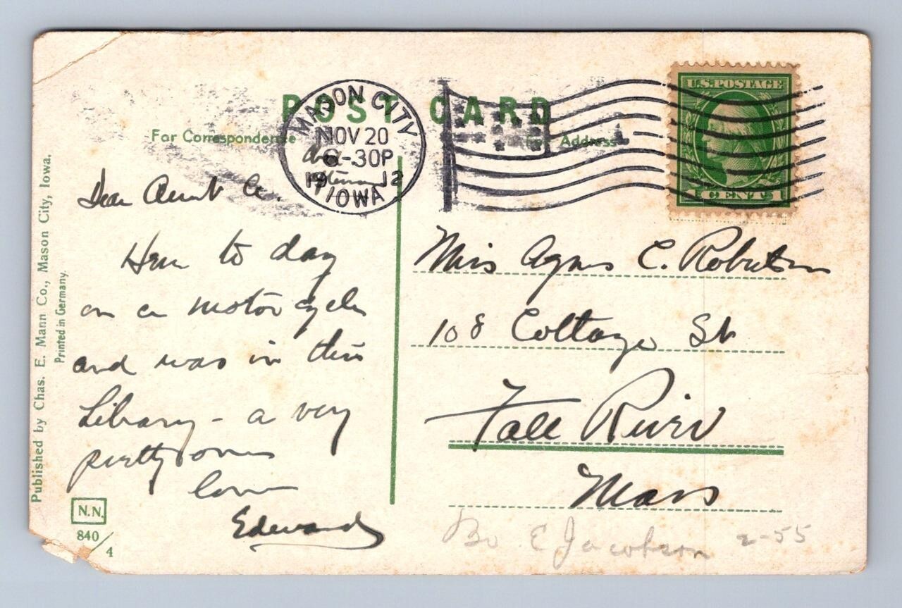 PUBLIC LIBRARY MASON CITY IOWA POSTCARD 1912
