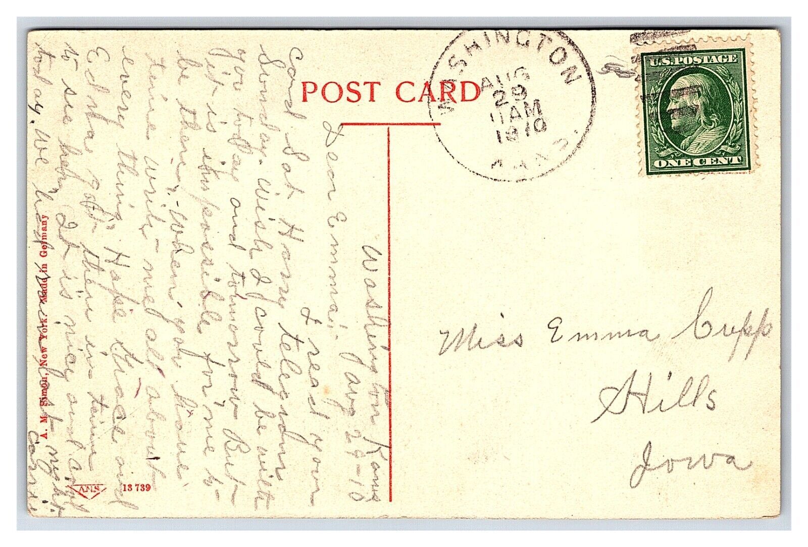 Condition: Mailed, Showing Wear From Handling. Writing On The Back. Reasonable Offers Always Considered. Public School Washington, Kansas c1910 Vintage Standard View PostcardPostmarked Washington, KANS.Reasonable O ... Read More