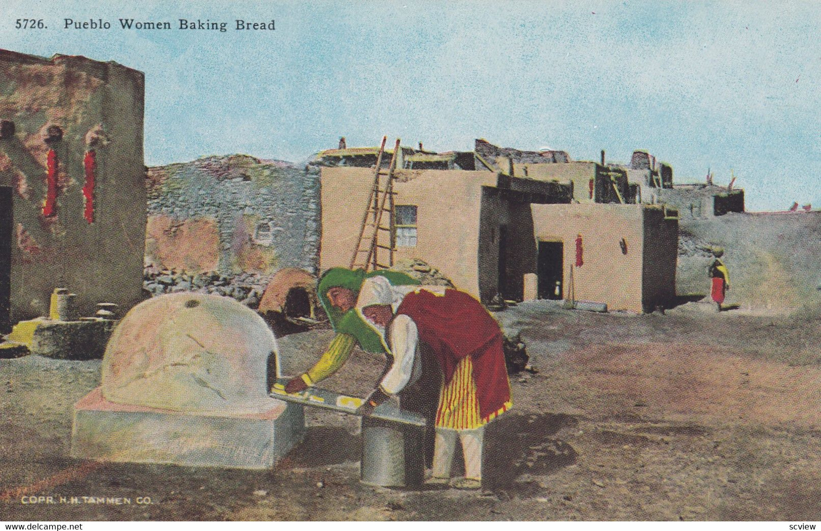 Pueblo Indian woman making bread , 1930-40s :: Postcard , 3.5 by 5.5 , Linen