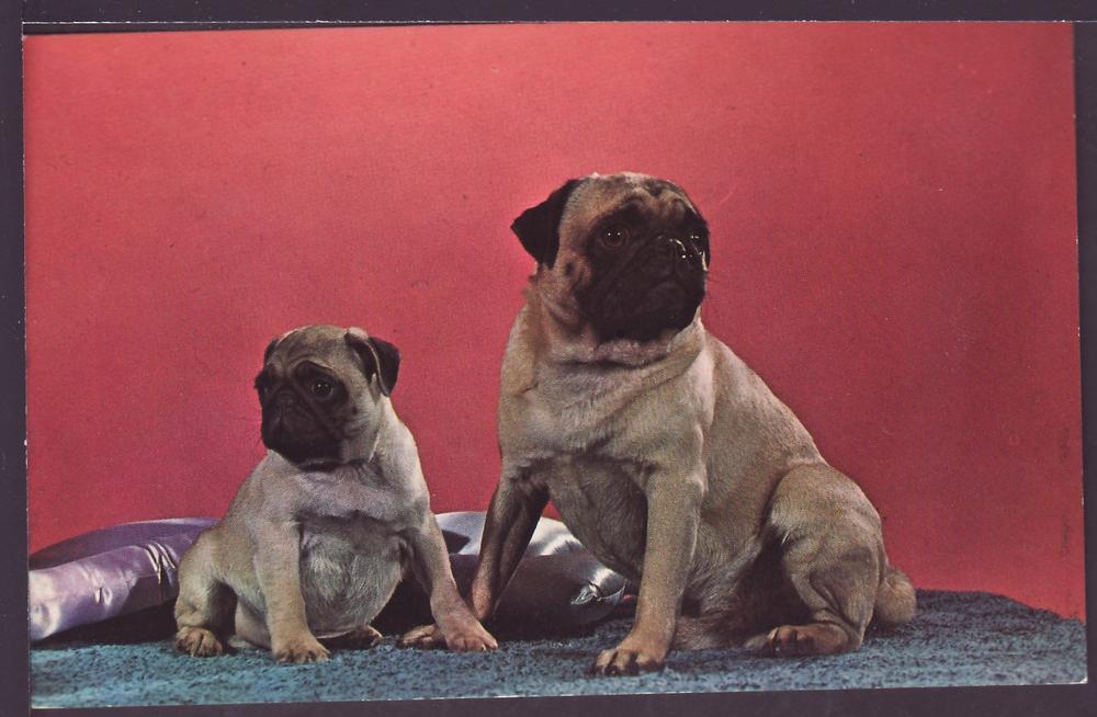 Purebred Pug Dogs Post Card K312