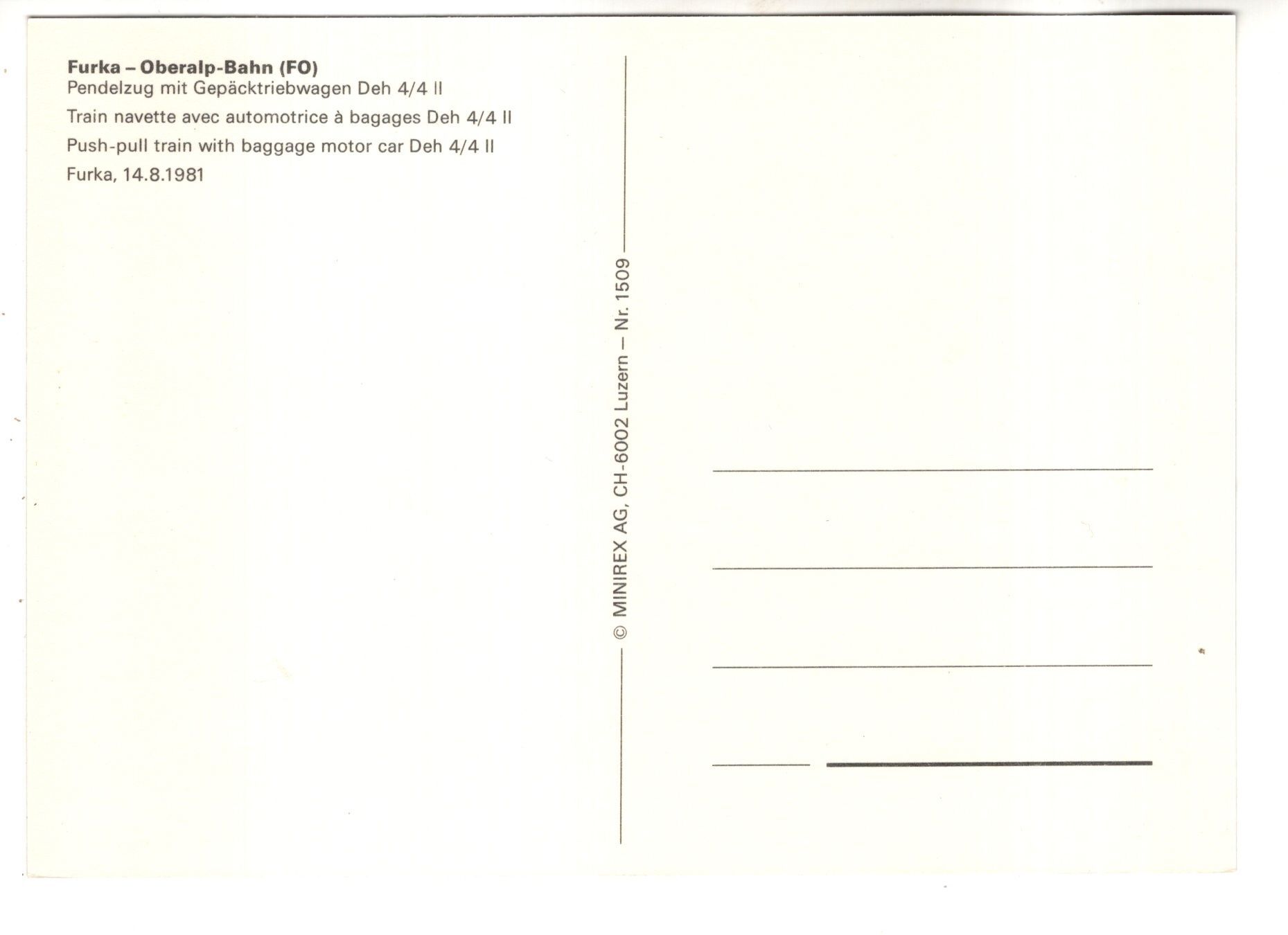 Push Pull Train with Baggage Car, Furka Pass, Switzerland 1981