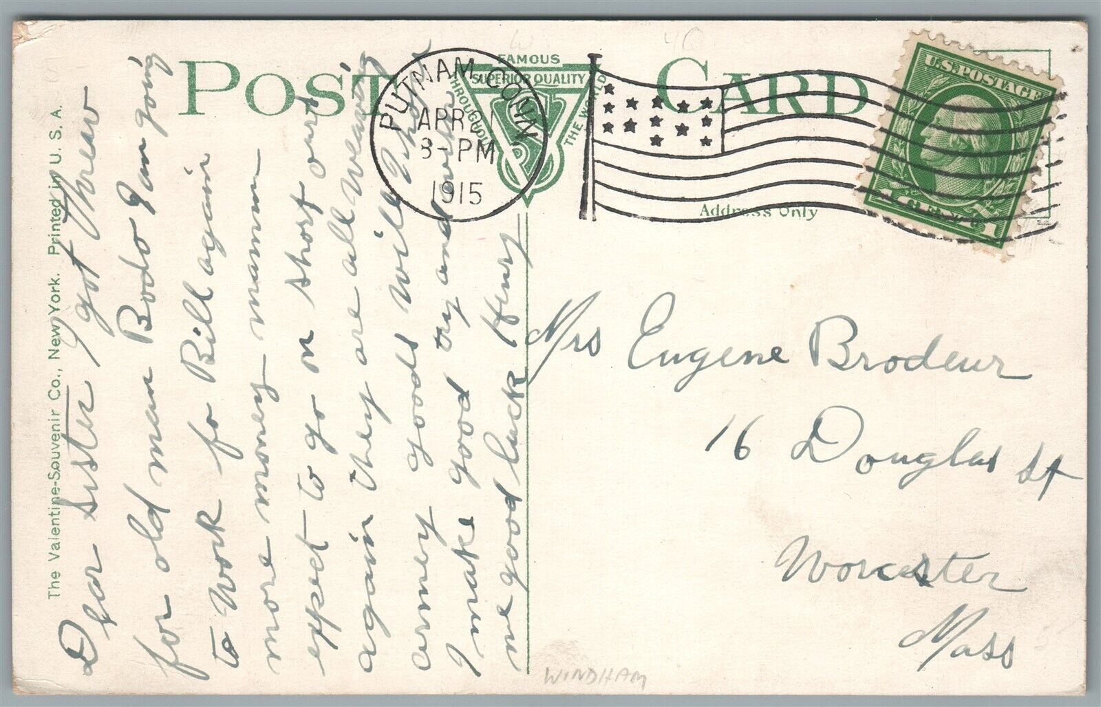 PUTNAM CT MAIN STREET LOOKING SOUTH ANTIQUE POSTCARD