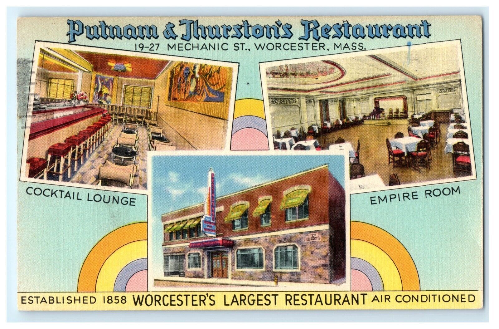 Putnam & Thurston Restaurant Worcester MA Massachusetts Postcard (DK3)