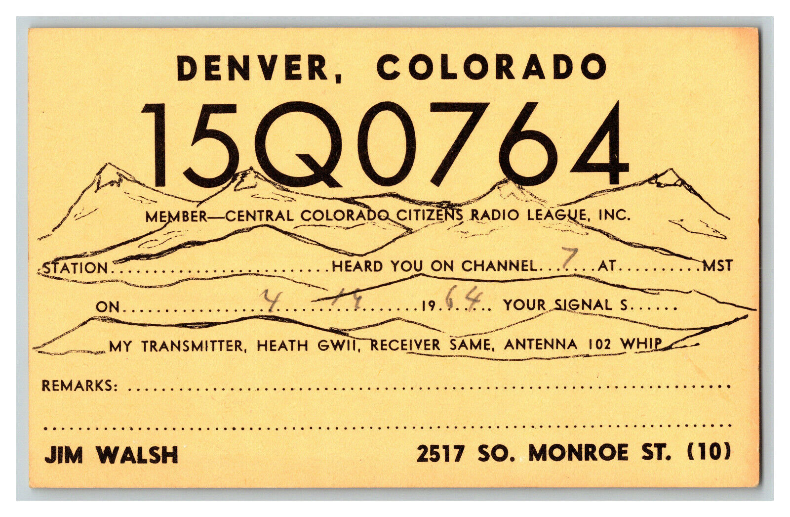 QSL Radio Card From Denver Colorado 15Q0764