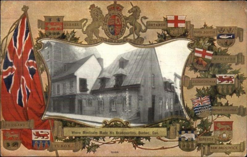 Quebec City Montcalm Bldg - Patriotic Flag & Shield Border c1910 Postcard