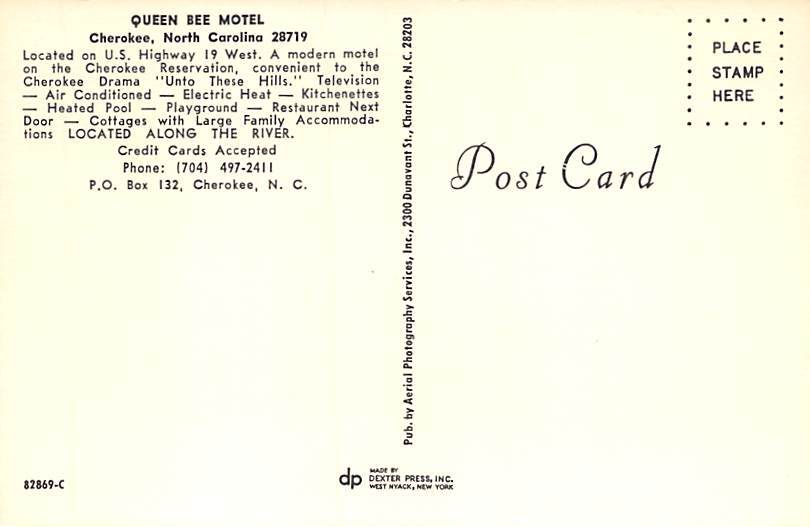 Queen Bee Motel Cherokee, North Carolina NC - Postcard