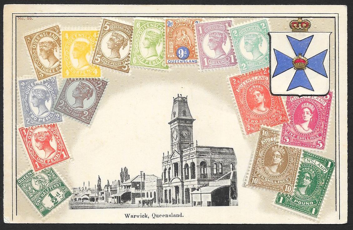 QUEENSLAND Stamps on Postcard Embossed Shield Used c1910s