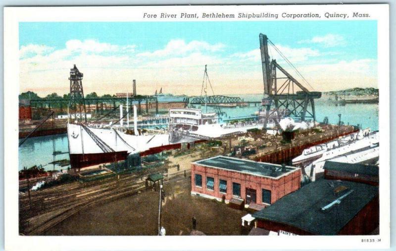 QUINCY Massachusetts MA Fore River Plant BETHLEHEM SHIPBUILDING c1940s Postcard