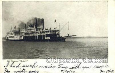 Quincy Steamboat, Ship Postcard 1907, Grade: 3, postal used 1907, Size: Regular size: Approx 3 1/2 X 5 1/2 inch (9 cm X 14 cm) Grading Scale: Grade 1 = Perfect corners Grade 2 = Very Minimal corner wear, no cr ... Read More