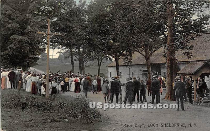 Race Day - Loch Sheldrake, New York NY Postcard Postal Date: Unused Grade: 1 Size: Regular Size Postcard - approximately 3 1/2 inch x 5 1/2 inch (9 CM x 14 CM) Grading Scale: Grade 1 = Perfect corners Grade 2 ... Read More