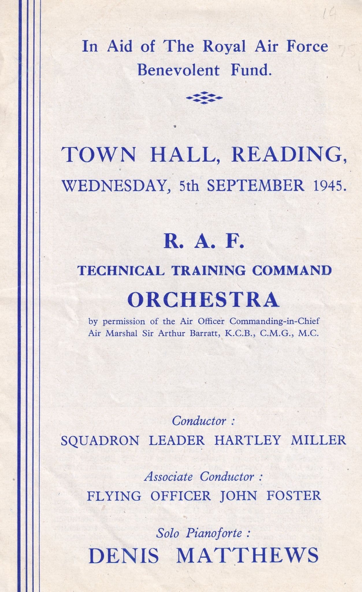 RAF Command 1945 WW2 Reading Berkshire Concert Theatre Programme