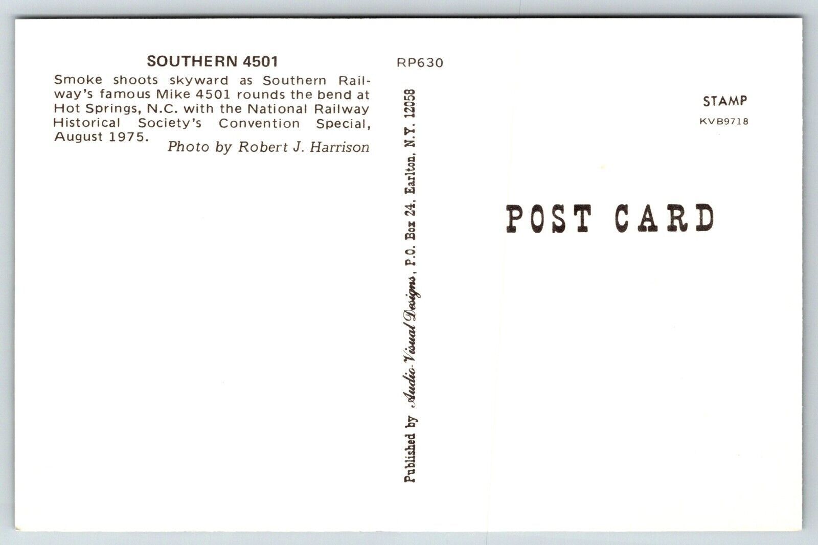 Railroad Locomotive Train Postcard - Southern #4501
