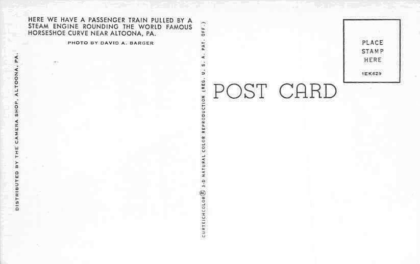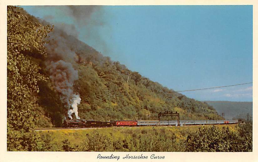 Railroad Postcards Passenger Train Pulled by a Steam Engine at Horseshoe Curve