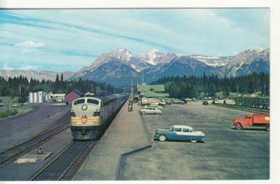 RAILROAD TRAIN THE CANADIAN at BANFF, AB postcard
