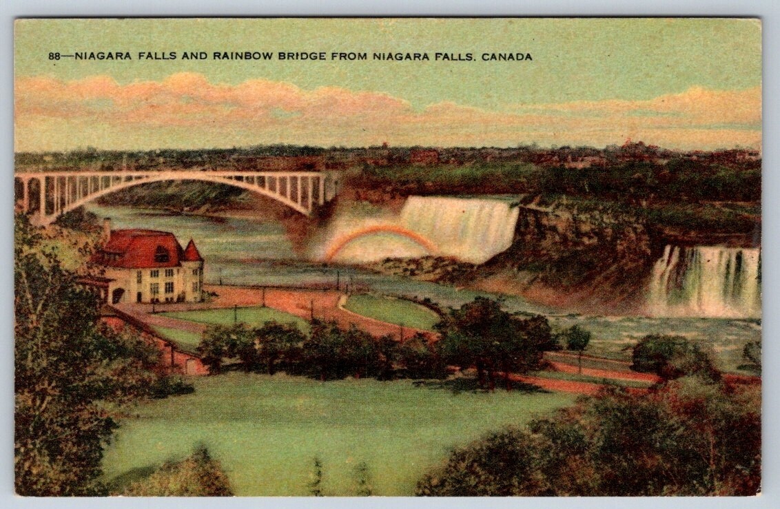 Rainbow Bridge & Niagara Falls From Canada, Antique Harris Litho Co. Postcard #2