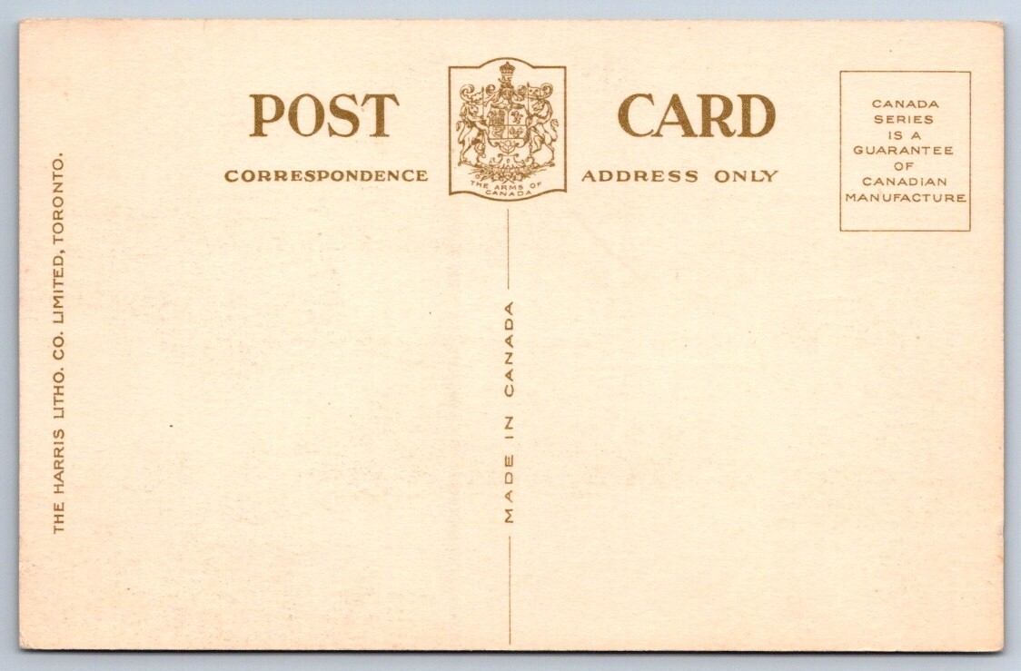 For sale is this Standard (5.5 x 3.5 in) size postcard. Pictures shown below are of the actual postcard that is for sale. Any defects not readily visible in these scans will be listed after this sentence.Very minor bumped corners. Publisher: Harris Litho Co. Limited SHIPPING CHARGES:Canada and United States: $1.50 for one postcard and 10 cents for each additional postcard*International: $3.00 for one postcard and 25 cents for each additional postcard*NOTE: Multiple payments result in multiple shipments.Please avoid making multiple payments by waiting for one complete invoice to be sent to you. Thank you.*Excludes adding additional folder postcards. Combined shipping on multiple folder postcards is welcome and shall be dealt with on an individual basis.017J107-50