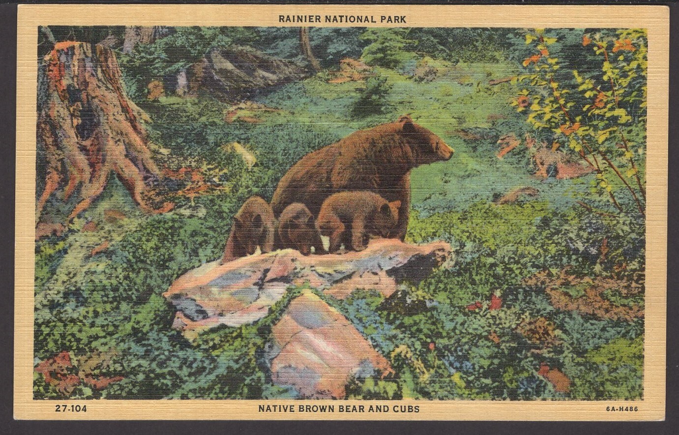 Rainier National Park - Native Brown Bear and Cubs ~ Linen