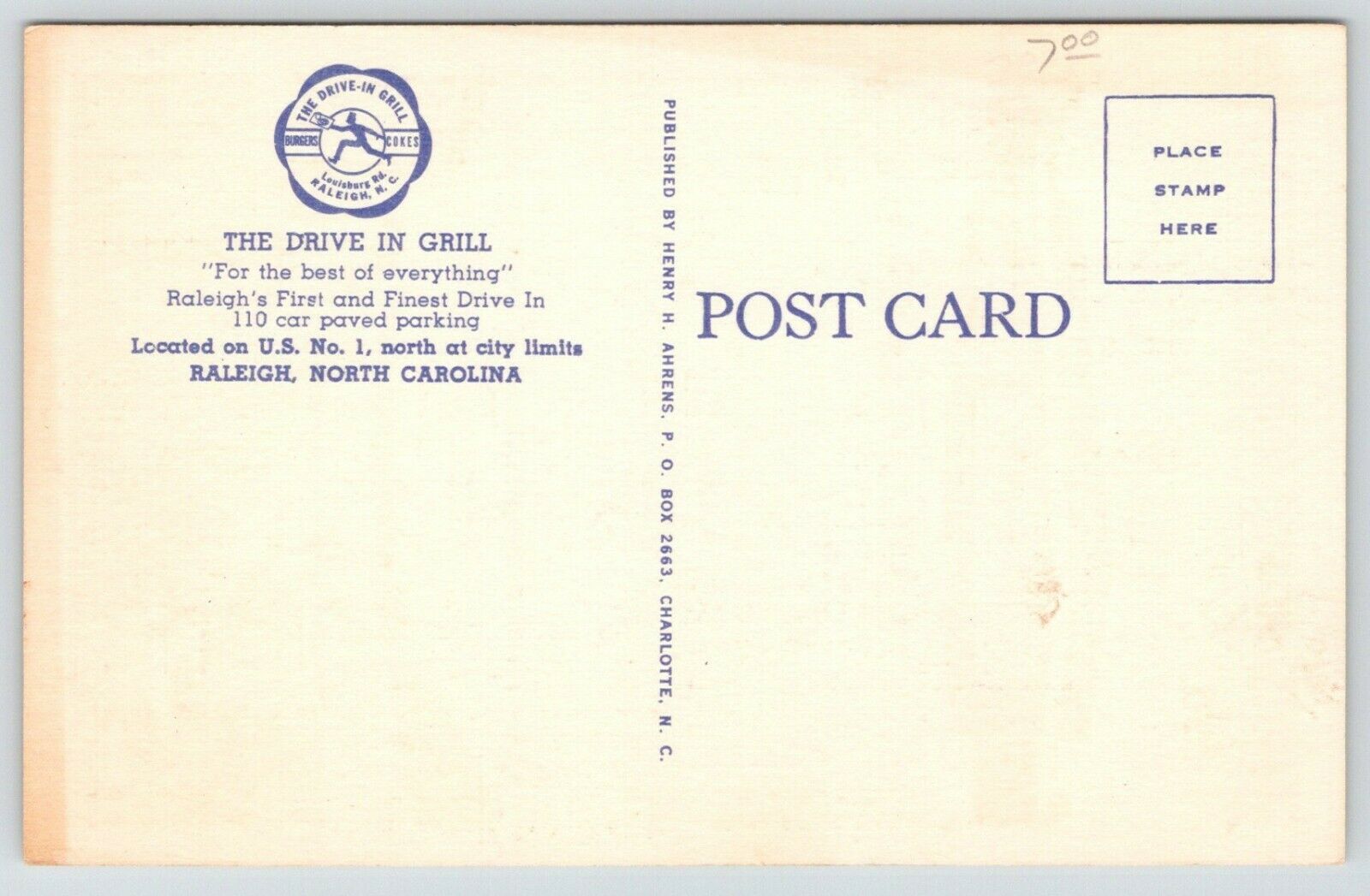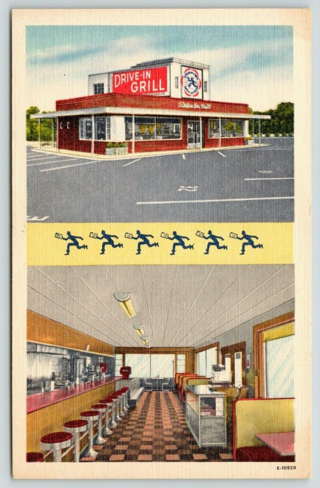 Raleigh NC Art Deco Drive-In Grill~Inside~Bar Stools~Checkered Floor~Linen 1940s