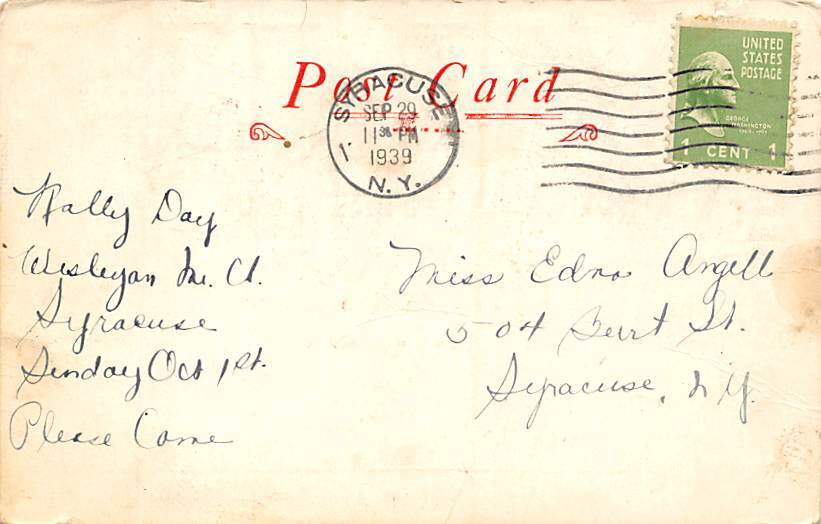 Rally day – Sunday school Rally Day Postcard 1939,
