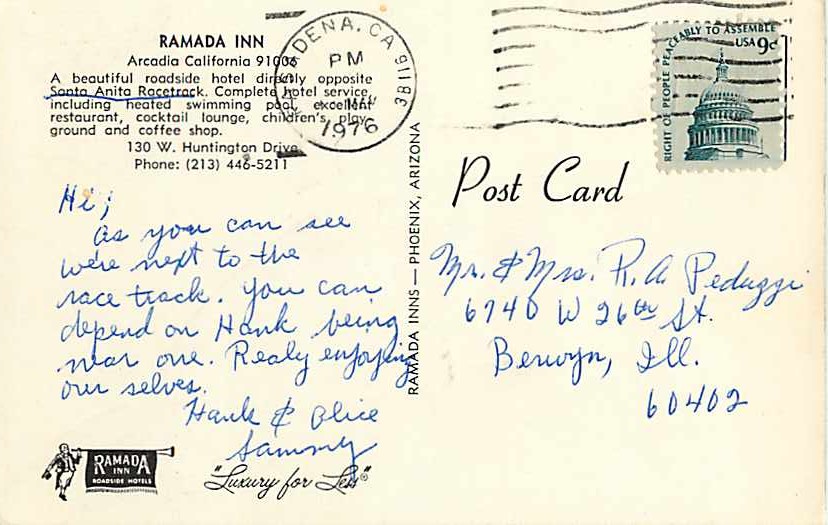 RAMADA INN ARCADIA CALIFORNIA CA IN 1976Type of Postcard: STANDARD SIZE CHROME