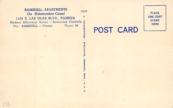 Ramsdell Apartment Fort Lauderdale, Florida Postcard ,