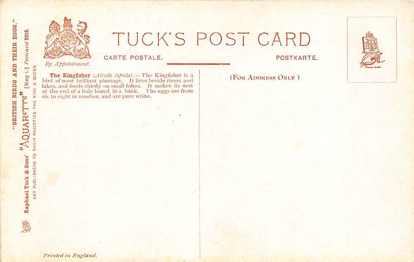 Raphael Tuck British birds and their eggs "The Kingfisher" Postcard