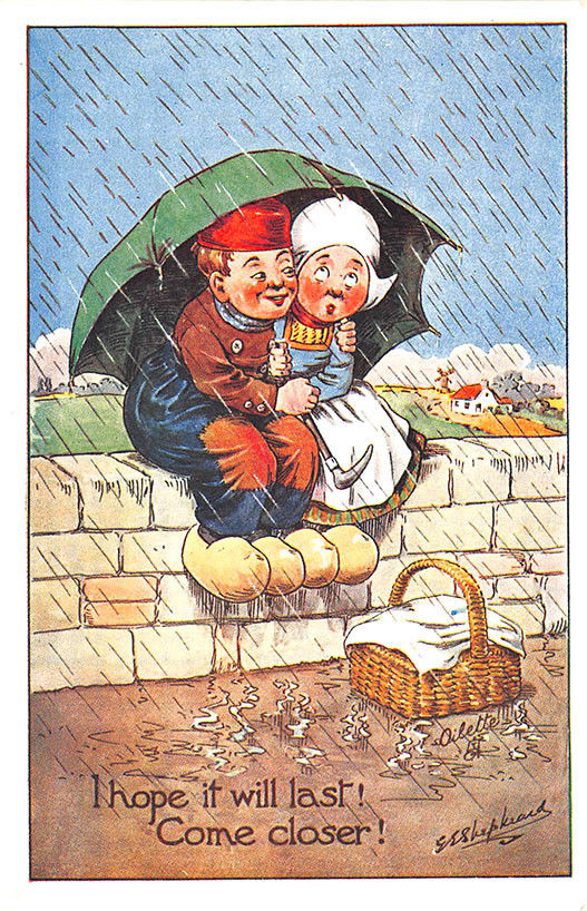 Raphael Tuck "Come Closer" Double Dutch Signed Shepheard, Original Postcard series 8475. PLEASE SEE SCAN(S) FOR CONDITION. CLICK HERE FOR MORE POSTCARDS.