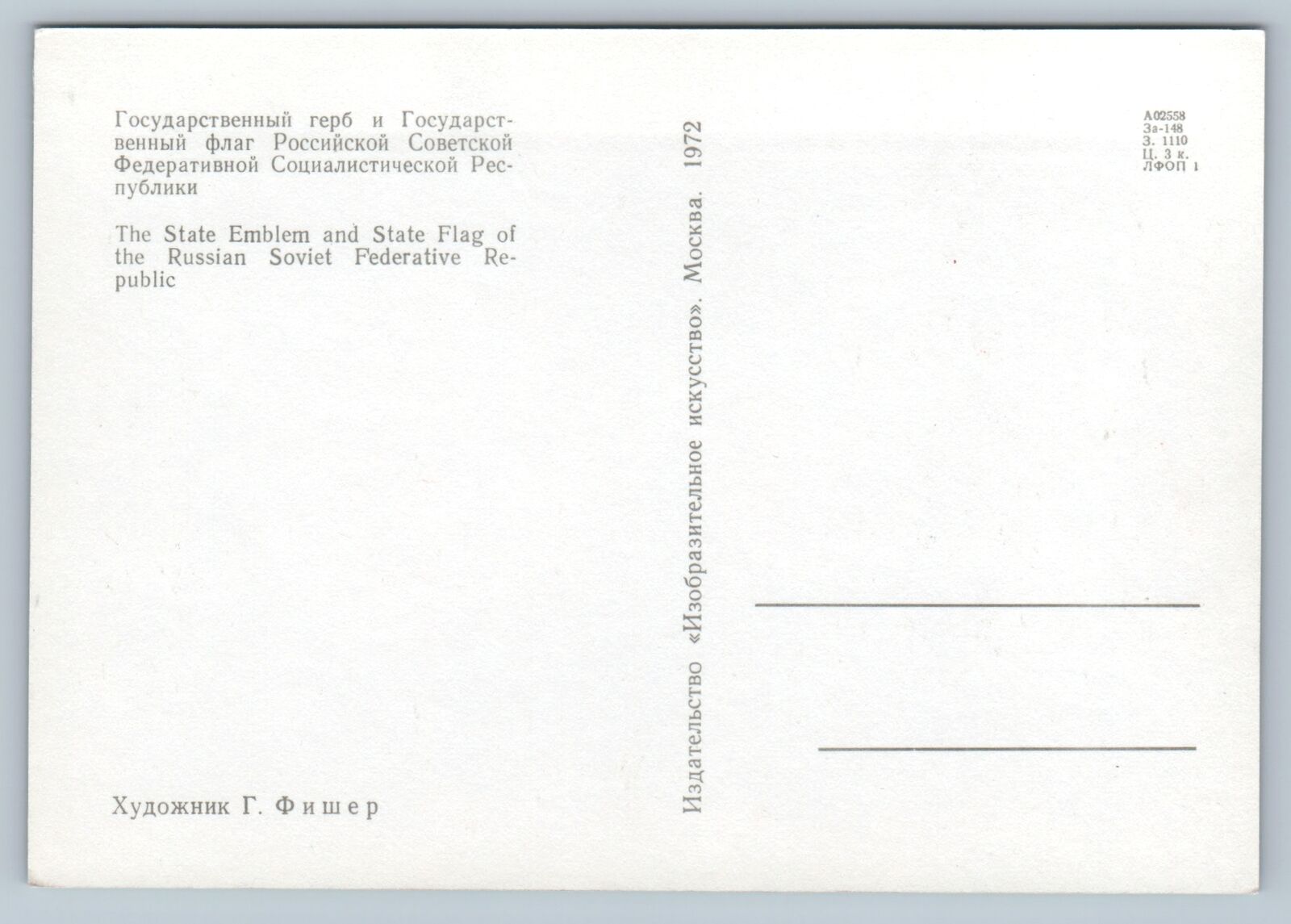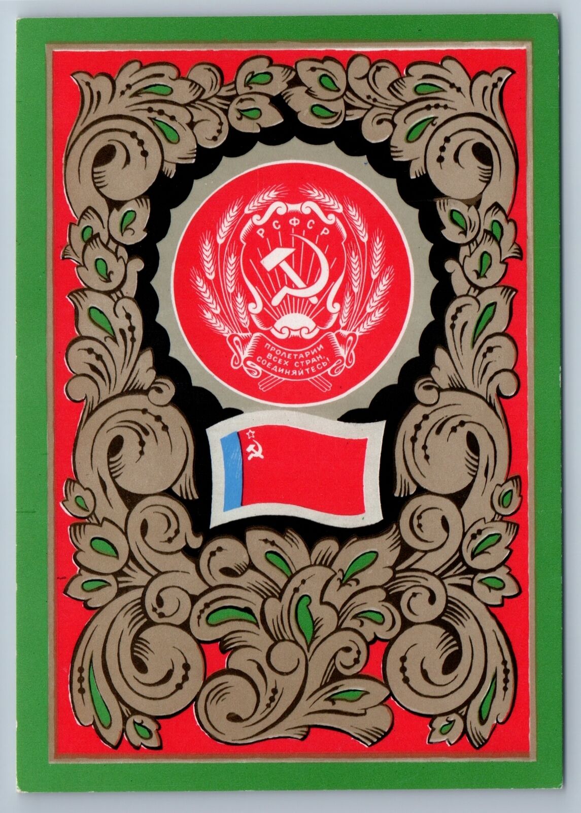 RARE Soviet RSFSR USSR State Emblem Coat & Flag 1972 Postcard