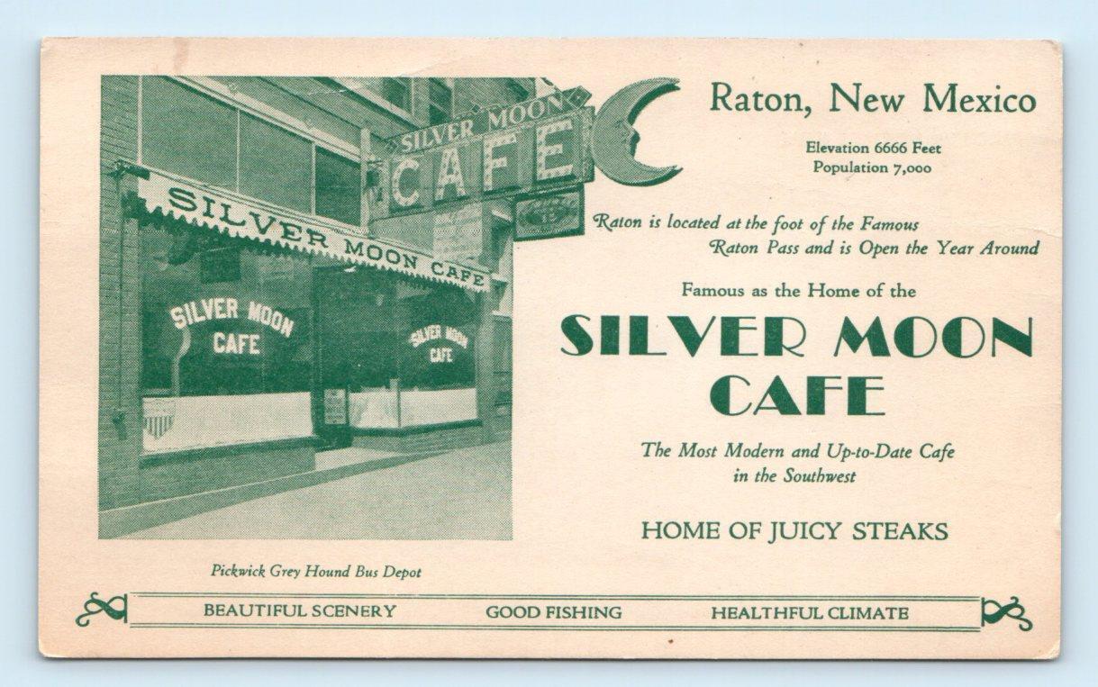 RATON, NM New Mexico ~ SILVER MOON CAFE ~ c1930s Roadside Colfax County Postcard