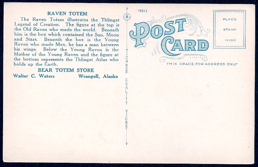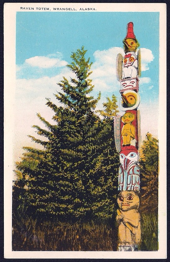 Raven Totem Pole Wrangell Alaska unused c1920's