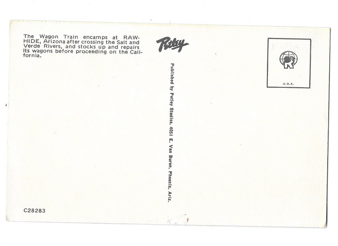 This card was of the original Rawhide Western Theme gathering place for events. After the props were moved to another location, Rawhide isn't the same. Petley card