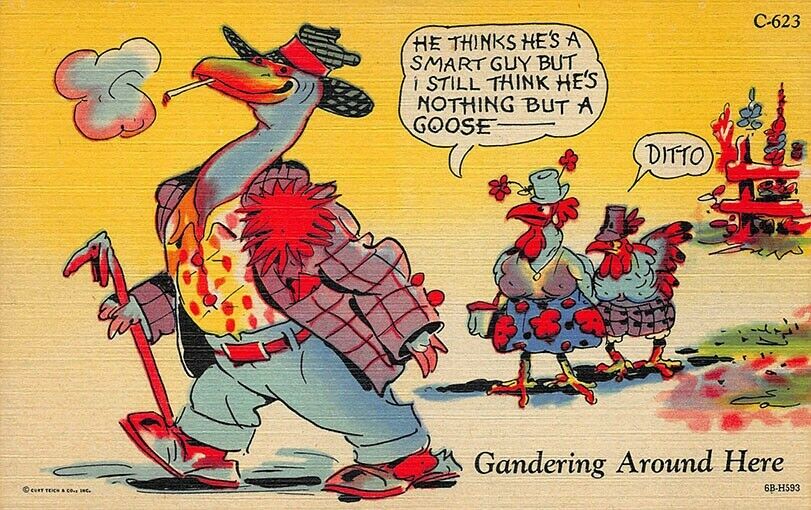 Ray Walters "Gandering Around Here" Curt Teich Publisher, postcard.THIS POSTCARD IS AN ORIGINAL AND NOT A COPY.For Postcards, Trade Cards, Covers, etc.? Visit our Hip Store: popcornjohn.cominkfrog terapeak
