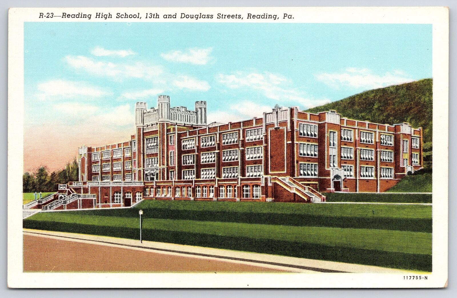 Reading High School Reading Pennsylvania PA Landscape Grounds Campus Postcard