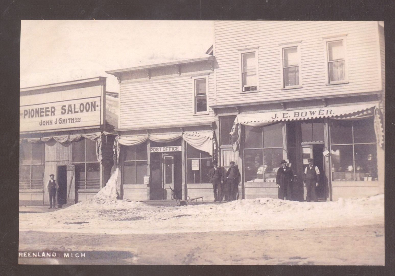 REAL PHOTO GREENLAND MICHIGAN DOWNTOWN STREET SCENE SNOW OSTCARD COPY