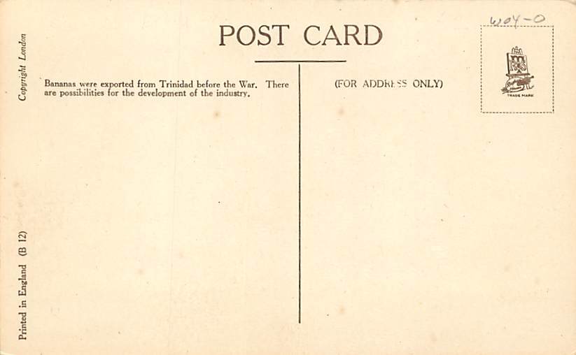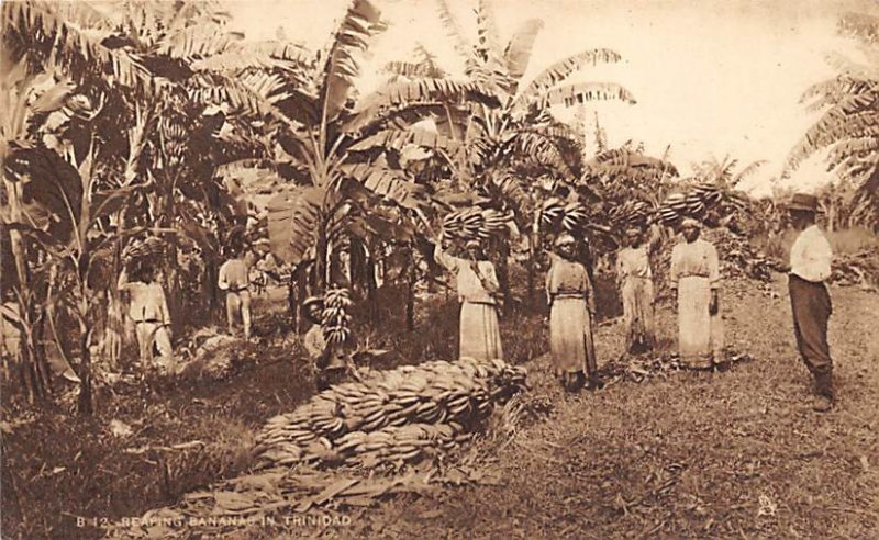 Reaping Bananas Trinidad Postcard Postcard, Grade: 1 Size: Regular Size Postcard - approximately 3 1/2 inch x 5 1/2 inch (9 CM x 14 CM) Grading Scale: Grade 1 = Perfect corners Grade 2 = Very Minimal corner wea ... Read More