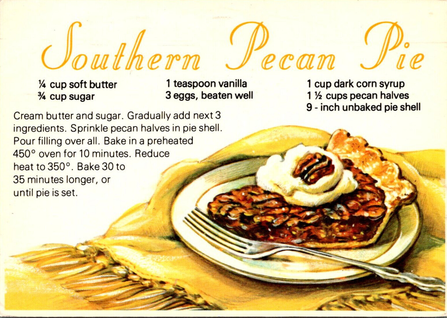 Recipe Card Southern Pecan Pie 1991