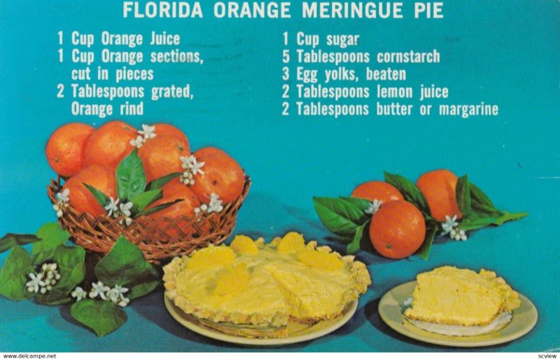 Recipes (cooking), 50-60s ; Florida Orange Meringue Pie :: Postcard, 3.5 by 5.5 , chrome