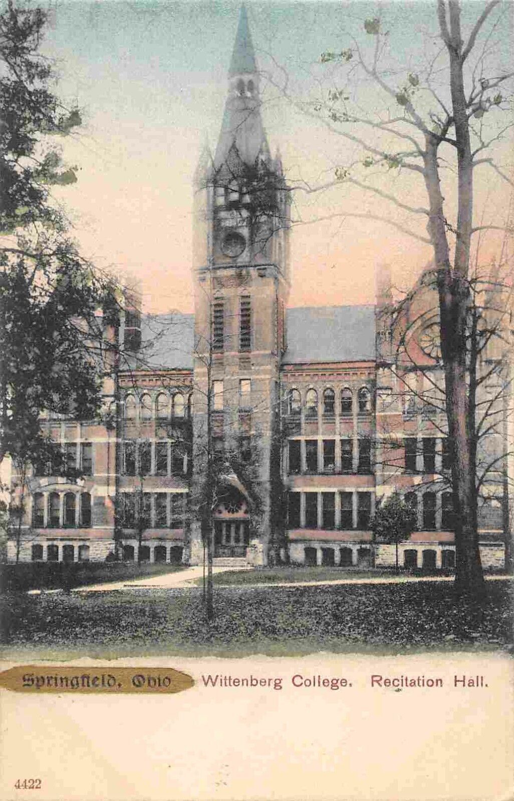 Recitation Hall Wittenberg College Springfield Ohio 1905c postcard