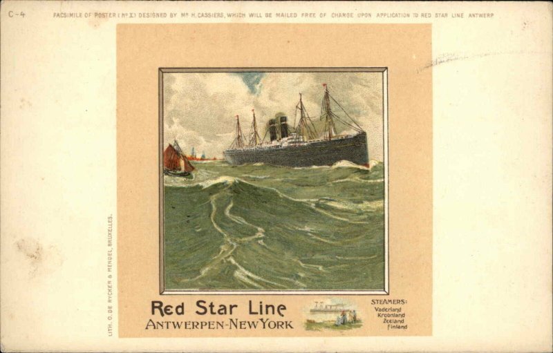 Red Star Line Steamships C-4Antwerp-New York c1910 Postcard