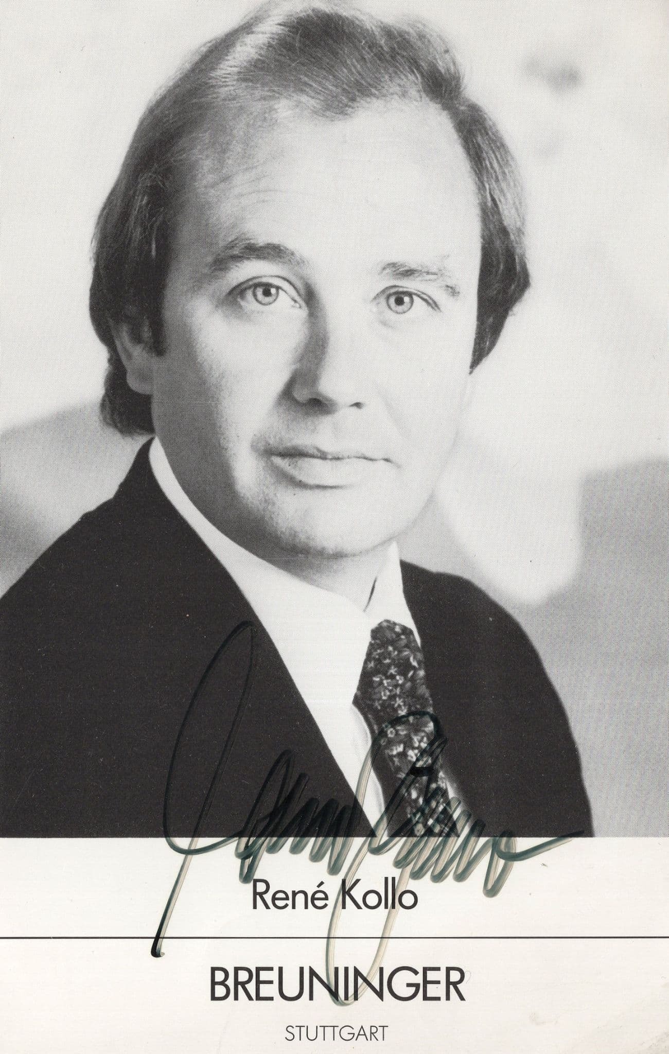 CHAU1667 This is a superb opportunity to secure this original Stuttgart undated but circa 40 years ago original 7" x 5" hand signed photo for Rene Kollo who has personally autographed the souvenir where his signature rests perfectly accompanying his portrait undedicated and bar small right corner this is in great condition.