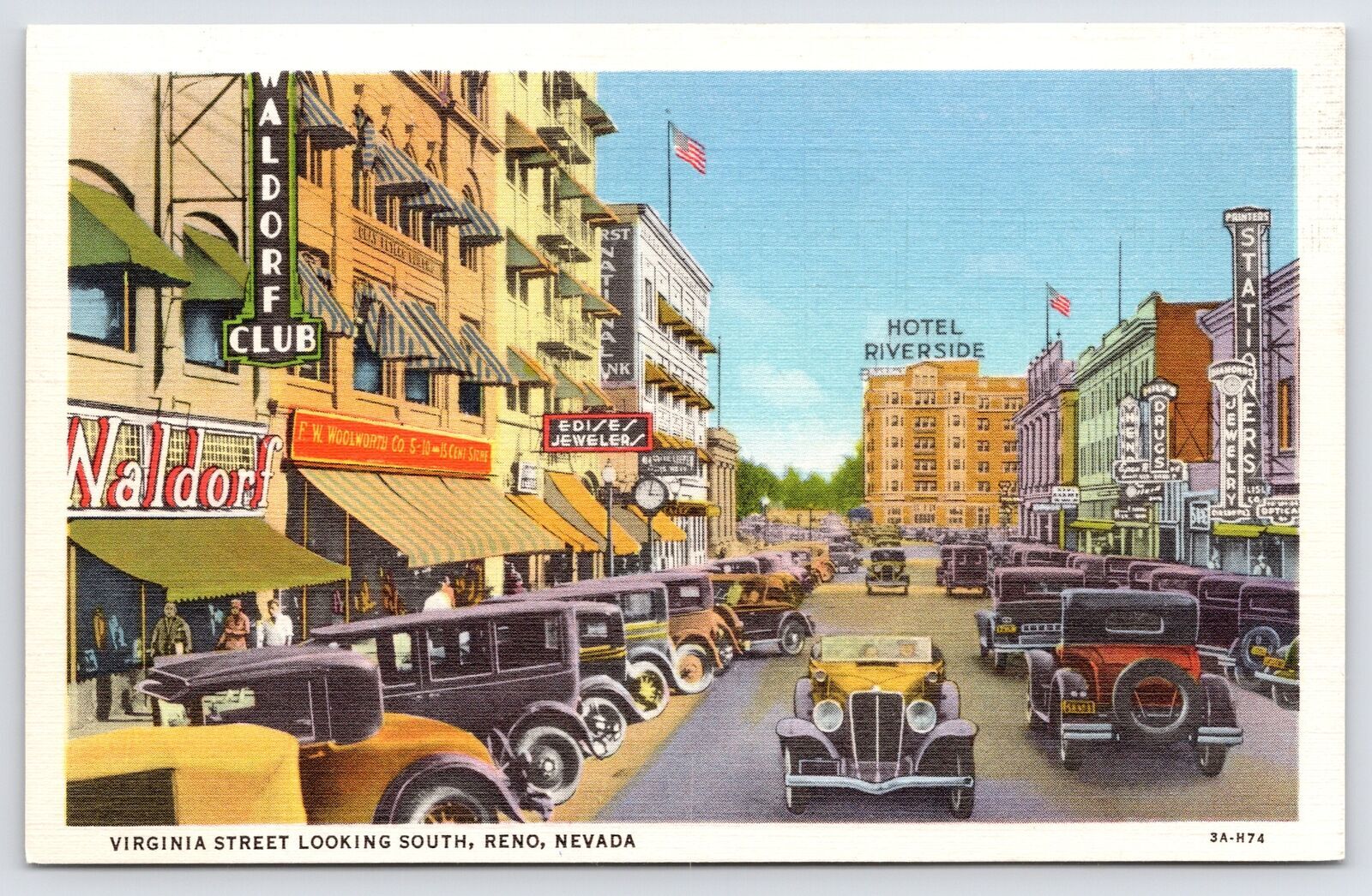 Reno NV~Waldorf Club~Woolworth's~Edise's Jewelry~Hotel Riverside~1933 Studebaker