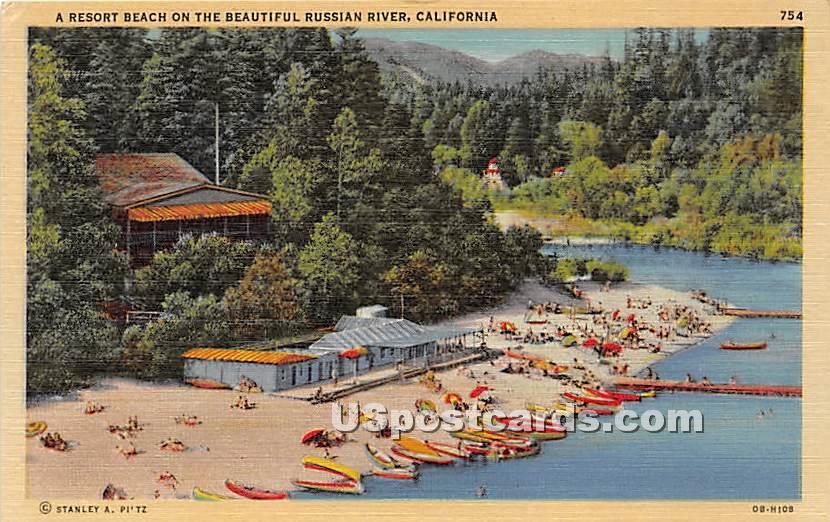 Resort Beach - Russian River, California CA Postcard ,